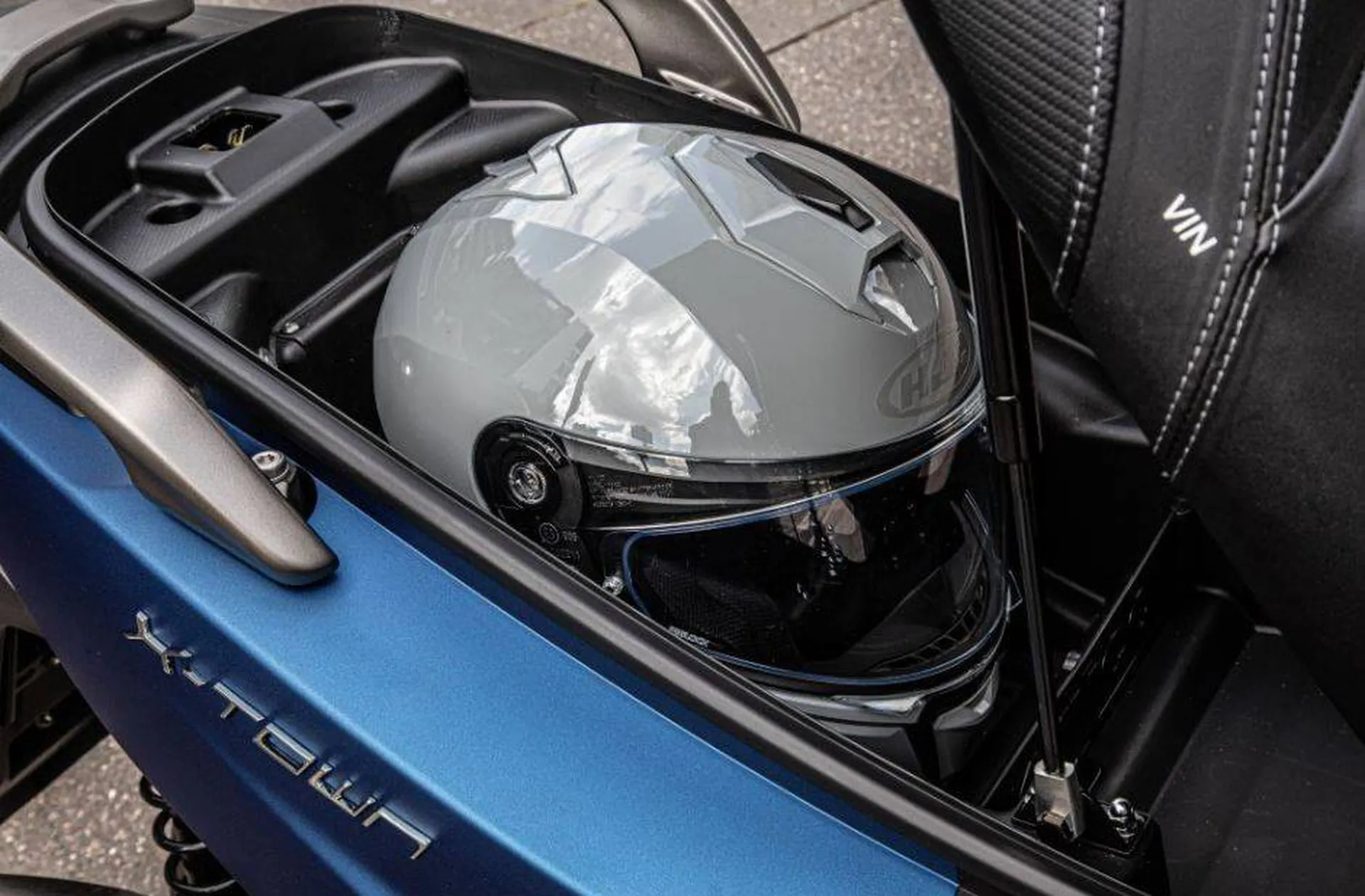 - d’un coffre sous selle élargi pouvant accueillir un casque intégral et un jet.